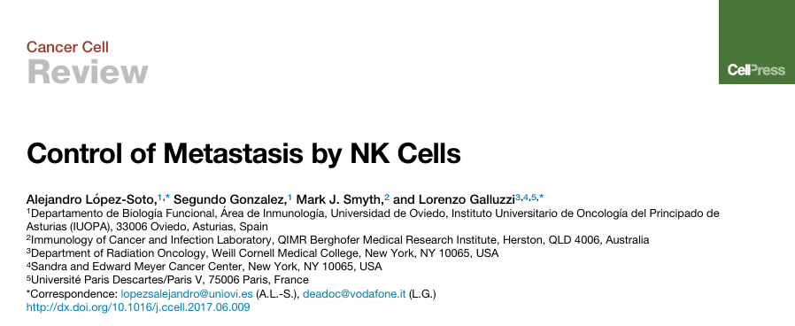2017年Alejandro López-Soto等共同撰写《Control of Metastasis by NK Cells》发表于《Cancer Cell》杂志。这篇综述深入探讨了NK细胞在控制癌症转移扩散中的关键作用,并讨论了利用NK细胞预防或治疗转移性疾病的潜在治疗策略。深圳奥林匹斯之门 pp电子奥林匹斯之门研发并推出的非改造同种异体NK细胞治疗产品系列,以奥林匹斯之门 pp电子奥林匹斯之门最新突破的NK细胞SDAP(Screening, Detection, Amplification, Purification)技术“APUNK”命名,致力于为临床端给予高质量NK和CAR-NK细胞产品,欢迎合作,造福患者!本文将简略介绍一下这篇综述。